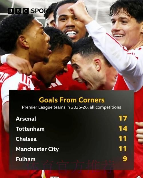 英超队本季角球造进球榜:阿森纳17球居首,热刺次席